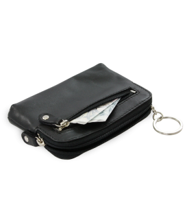 Größerer Schlüsselanhänger aus schwarzem Leder mit zwei Reißverschlüssen 619-8104-60