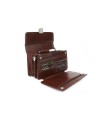 3 Fächer, getrennt durch Reißverschlusstaschen, klappbares Register mit 2 Fächern für Dokumente, 4 Taschen für Zahlungskarten oder Visitenkarten, 2 Reißverschlusstaschen, abnehmbarer Schlüsselring, externe Reißverschlusstasche, abnehmbare Handgelenkschlaufe, abnehmbarer Schultergurt. Grundmaß: 22 x 16 x 13 cm. Material: Echtes Rindsleder (VT). Ledernfarbe: Braun