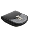 Dieses einzigartige Damen-Lederportemonnaie verfügt über ein mit einem Schloss gesichertes Münzfach außen. Es bietet außerdem ein Geldscheinfach, sechs Kreditkartenfächer und zwei offene Fächer.