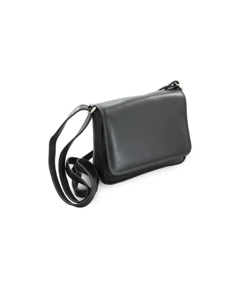 Handtasche aus schwarzem Leder mit Reißverschluss 212-3013-60