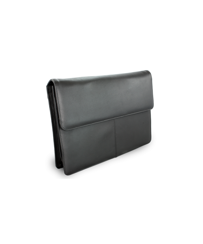 2 compartments separated by a zippered pocket, 2 zippered pockets, and 1 interior pocket, detachable key ring, interior pockets for calculator, cards, and writing utensils, exterior zippered pocket.