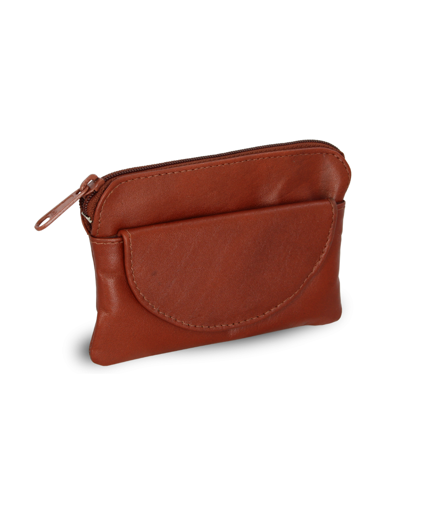 Brown leather keychain with zipper and flap pocket 619-0365-41