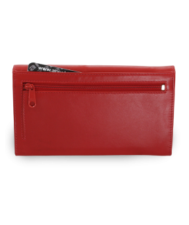 Wide compartment for banknotes, snap pocket for coins, 6 card slots, 3 large interior pockets and 1 zip pocket, 1 zippered and 1 open back pocket. Basic dimensions: 18 x 10 cm. Material: Genuine cowhide leather (NAPPA). Leather color: Red